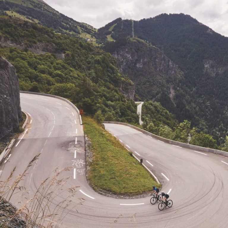 With 21 hairpin bends, and 1122m climbing, this road is ridden to reach the top. There is no other reason than to put your head down and go. And go as fast as you are capable of. This is not a ride into a hidden mountain landscape, a cast away pass or climbing the highest roads. The road to Alpe d'Huez is a racer's road, a test of endurance and stamina like no other climb in France. The entire road screams faster, harder, better. It starts with a timing clock and ends at the stage finish at the back of Alpe d'Huez. Each of the bends has a number, gradient, altitude and the name of a previous winner or winners of this most iconic of climbs. Each corner has a history, e.g. bend 7 is the Dutch corner which will explode in in orange July. This is a must ride climb.