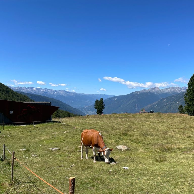 You arrive at the top of the pass to be greeted by grazing cows. The contrast of your state of exhaustion and the cows grazing with no care in the world could not be greater.
