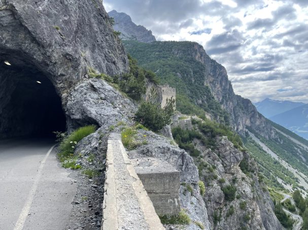 As the road finally eases, it passes through two short, rocky tunnels before reaching the ancient towers overlooking Valdidentro. From here, the road continues on to Lago Cancarno, a perfect spot for a coffee break. A dirt track loops around both lakes, adding to the sense of adventure.