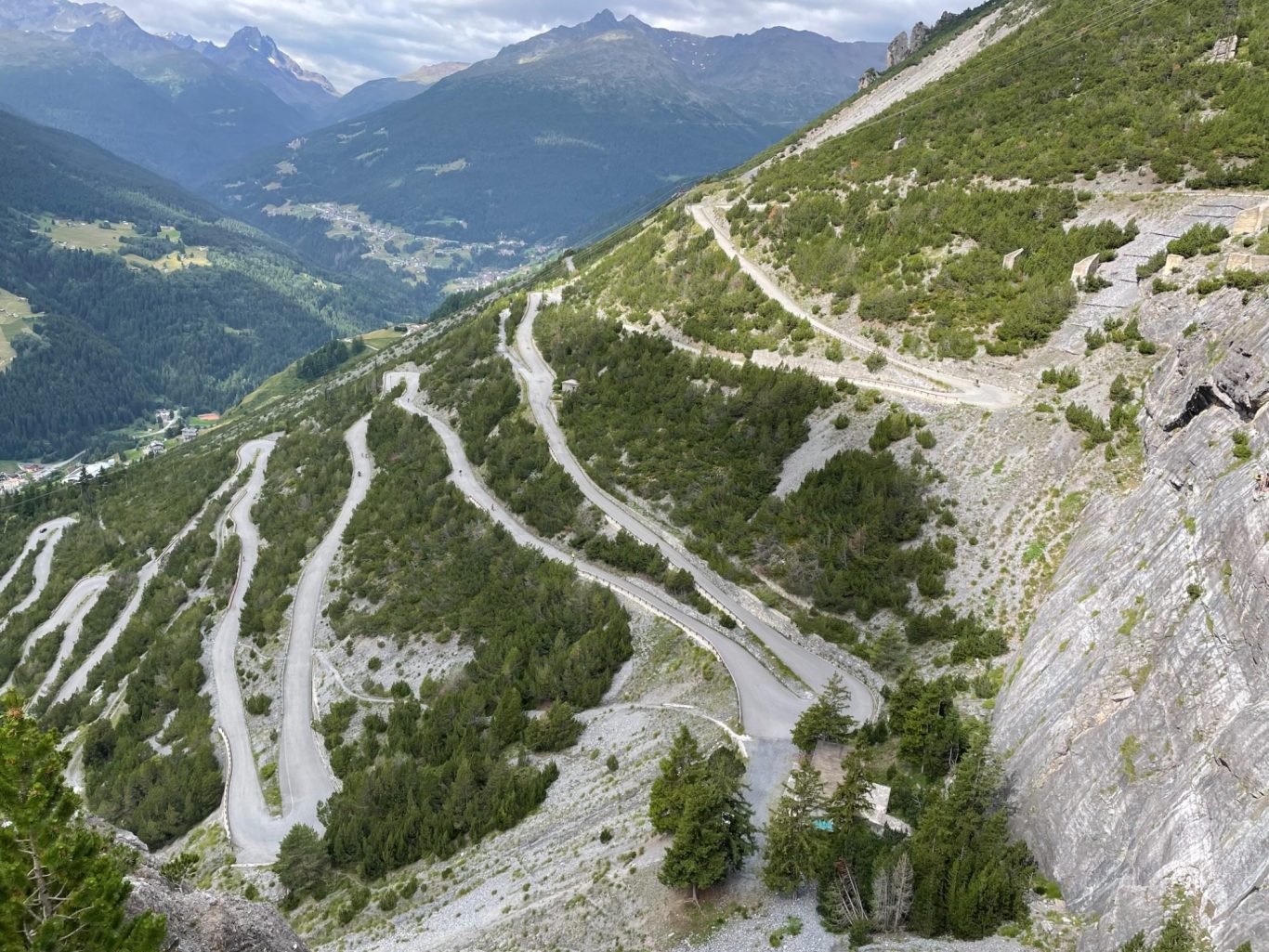 From Turripiano, the road climbs via 21 hairpins, winding its way up a steep mountainside like shoelaces. It is a quiet road, popular with cyclists, with rock-climbing walls along the route and excellent views over the Valdidentro valley.