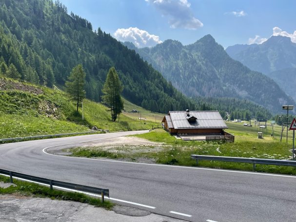 After leaving the Canazeir and the valley floor and negotiating a number of switch backs, the road starts clinging to the side of the mountain given this pass a slighly claustrophobic and intense character.