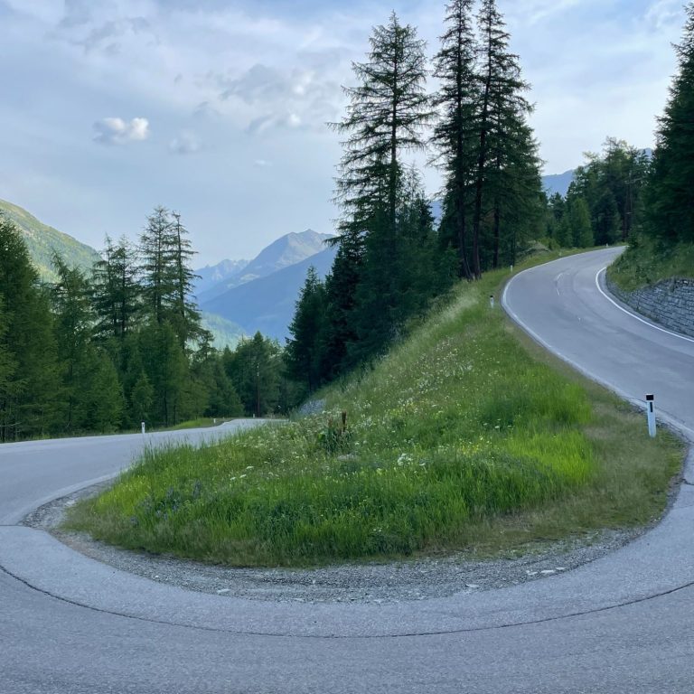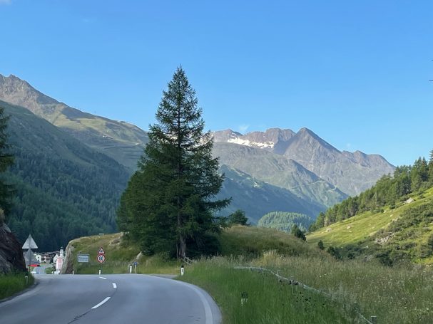 Leaving Sölden is an uneven climb to Hochgurgl. Some very steep sections, a little downhill, glorious switch backs, all against the backdrop of the Ötztaler alps, which are some of the highest in Austria.