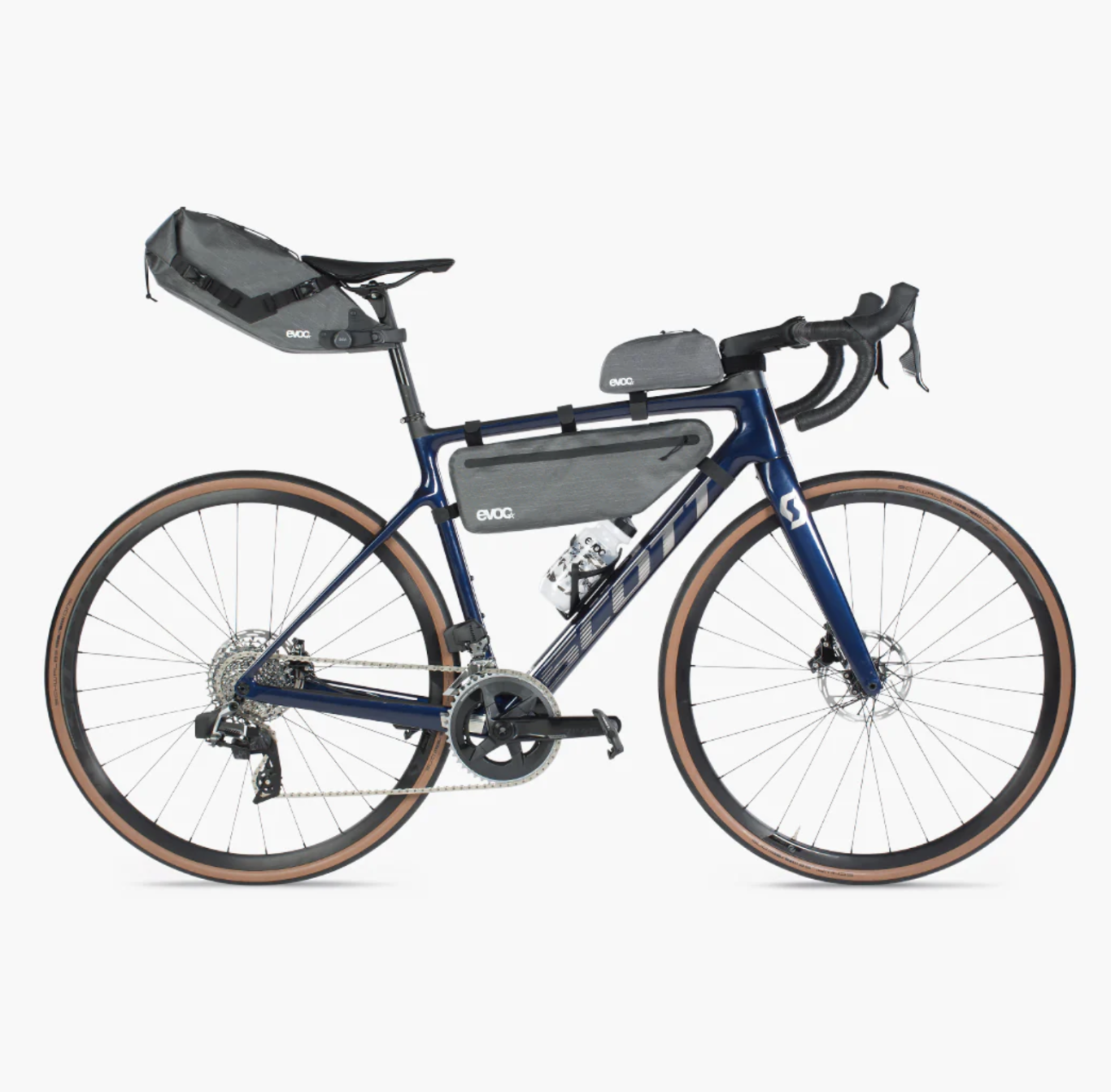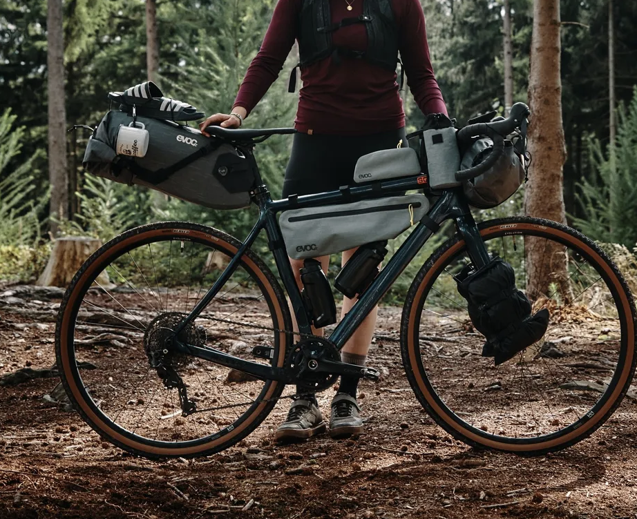 The most important bag you can possibly use is a seat pack. With a capacity up to 16l and easy mounting options under your saddle between saddle and seat post, the seat pack is a large container interfering the least with your riding and the weight distribution of your bike. There are quite a number of options ranging from packs to be fitted under the saddle to a shell being fitted that carries an easy to remove waterproof bag. A seat pack should hold all the stuff you don’t need to access while riding. One key consideration is if the pack has enough stiffness not to sway from side to side when you are out of the saddle.